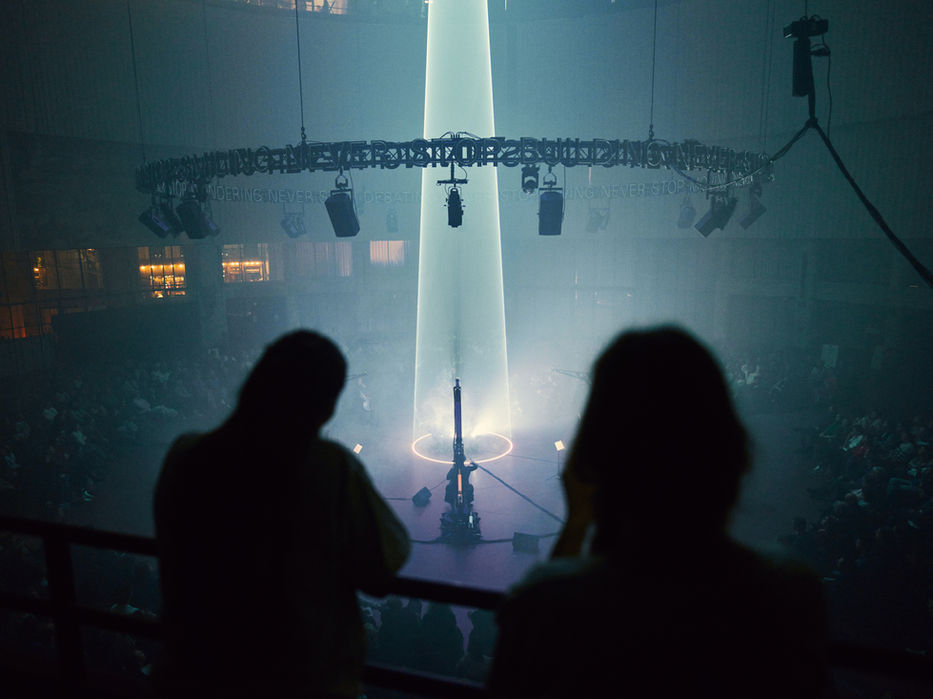COCON is an audiovisual live performance developed by Cello Octet Amsterdam and Nick Verstand. On stage, eight cellists are surrounded by eight robotic arms that together form a kinetic cocoon around the performers. This framework provides space for compositions written especially for this production by various internationally renowned artists. As the cellists perform the music, the mechanical cocoon slowly unfolds and moves in waves with the sound. The installation behaves like an autonomous entity on stage, interacting live with the musicians to create a dramatic arc of light, sound, and motion in unison with the compositions.